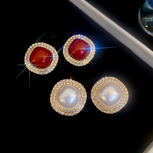 A2廠 韓國韓版鑲鑽菱形珍珠銀針耳環 批發 折扣@洽客服 25.02.W1「HE24644」