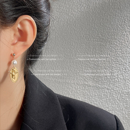 A廠 韓系復古淡水珍珠人像銀針耳環 批發 折扣@洽客服 25.02.W1「A729」