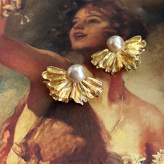 A2廠 韓國韓版褶皺花朵珍珠銀針耳環 批發 折扣@洽客服 25.02.W1「HE24729」