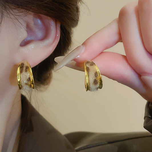 A2廠 韓國韓版植絨豹紋C型銀針耳環「WE942」24.12.W1 批發折扣@洽客服