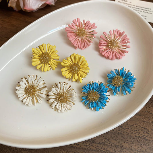 A2廠 韓國韓版拉菲草雛菊花耳環 批發 折扣@洽客服 25.04.W3「HE25497」