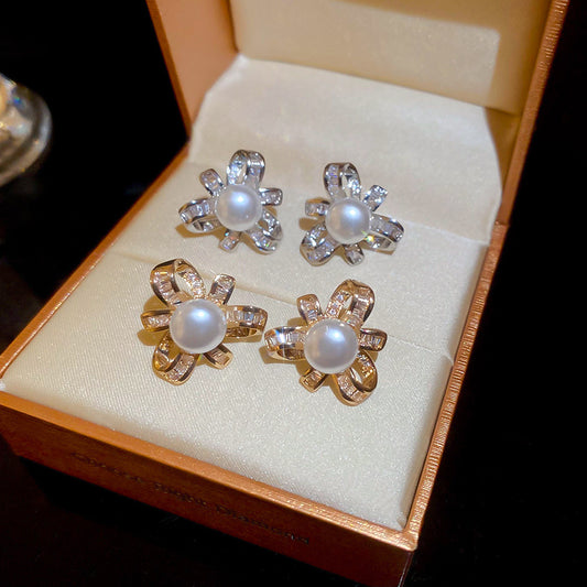 A2廠 韓國韓版微鑲鋯石珍珠朵銀針耳環 批發 折扣@洽客服 25.07.W1「HE26295」