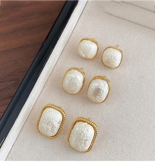 A2廠 韓國韓版方形人造珍珠銀針耳環「HE24110」25.01.W2 批發折扣@洽客服