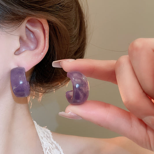 A2廠 韓國韓版時尚葡萄紫C型銀針耳環 批發 折扣@洽客服 25.05.W1「HE25481」