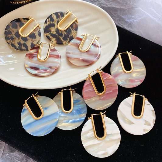 A2廠 韓國韓版醋酸板U型銅鍍18k金銀針耳環 批發 折扣@洽客服 25.08.W5「HE27867」