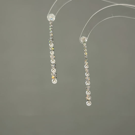 A2廠 韓國韓版超閃鋯石長珍珠流蘇銀針耳環 批發 折扣@洽客服 25.11.W1「HE24410」