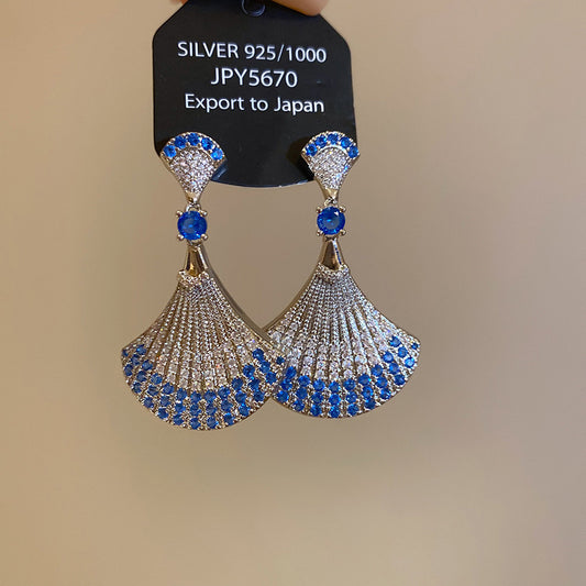 A2廠 韓國韓版超閃鋯石扇形銀針耳環 批發 折扣@洽客服 25.10.W2「WE4148」