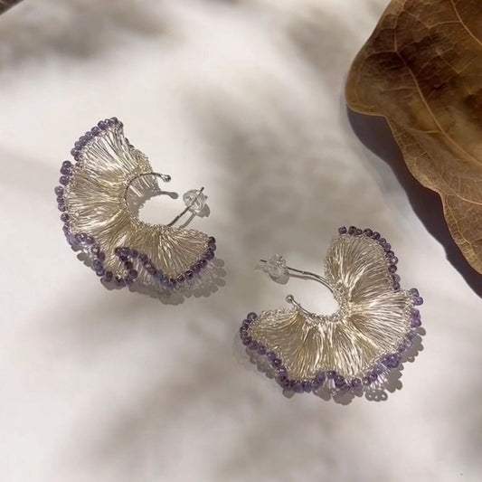 A2廠 韓國韓版銅絲纏繞扇形編織銀針耳環 批發 折扣@洽客服 25.09.W3「WE3853」