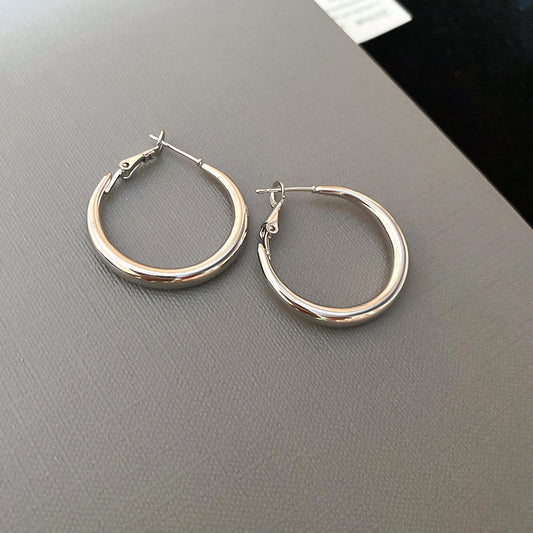 A2廠 韓國韓版銀針光面圓形耳圈 批發 折扣@洽客服 25.05.W5「HE26316」