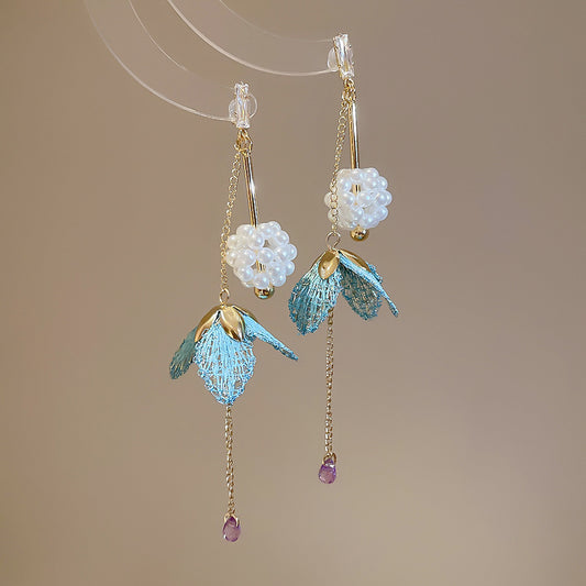 A2廠 韓國韓版鋯石仿珍珠針織花流蘇銀針耳環 批發 折扣@洽客服 25.09.W3「HE28103」