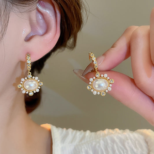 A2廠 韓國韓版鋯石橢圓珍珠銅鍍18K金銀針耳環 批發 折扣@洽客服 25.07.W2「WE2583」
