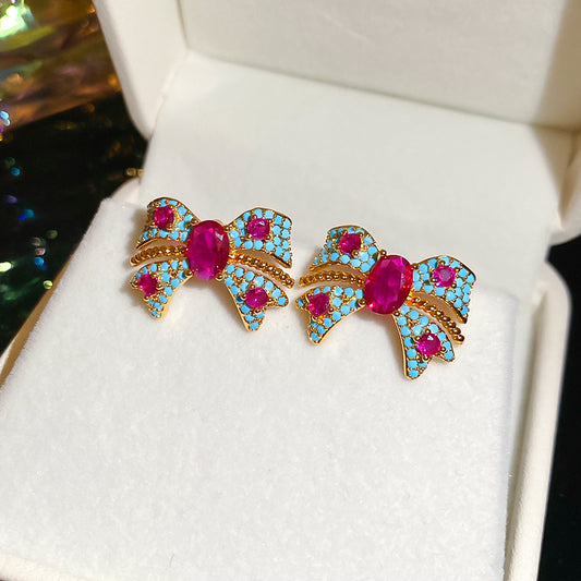 A2廠 韓國韓版鋯石橢圓形蝴蝶結銀針耳環 批發 折扣@洽客服 25.09.W1「HE28116」