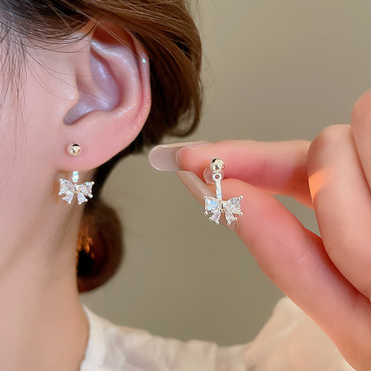 A2廠 韓國韓版鋯石蝴蝶結後掛式銀針耳環 批發 折扣@洽客服 25.07.W1「HE26292」
