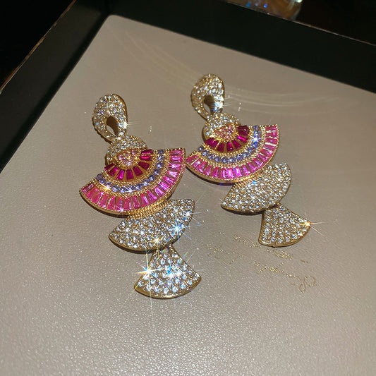 A2廠 韓國韓版鋯石鑲鑽扇形銀針耳環 批發 折扣@洽客服 25.06.W2「HE7186」
