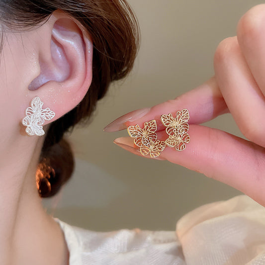 A2廠 韓國韓版鏤空蝴蝶銀針耳環 批發 折扣@洽客服 25.07.W2「HE26346」