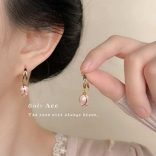 A廠 日韓款油畫感甜美鬱金香銀針耳環 批發 折扣@洽客服 25.08.W1「5822」