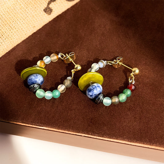 A廠 韓系彩色瑪瑙石銀針耳環 批發 折扣@洽客服 25.07.W3「2423」