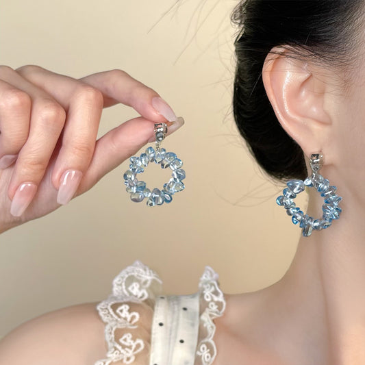 A廠 韓系藍色暈染滴油花朵銀針耳環 批發 折扣@洽客服 25.04.W1「4303」