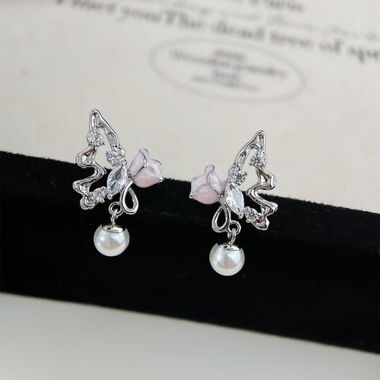 A廠 韓系蝶戀花銀針耳環 批發 折扣@洽客服 25.07.W3「4529」