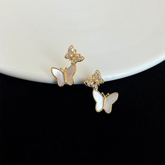 A廠 韓系輕奢風貝母蝴蝶銀針耳環 批發 折扣@洽客服 25.07.W3「4396」