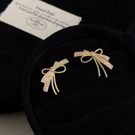 A廠 韓系輕奢風鋯石蝴蝶結銅鍍18k金銀針耳環 批發 折扣@洽客服 25.06.W2「2623-2624」