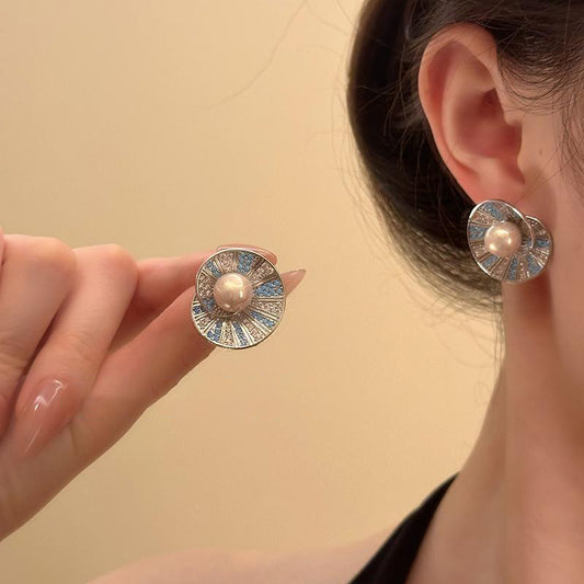 A2廠 韓國韓版復古螺旋幾何圓珍珠鑲鑽銀針耳環 批發 折扣@洽客服 25.10.W2「HE28455」