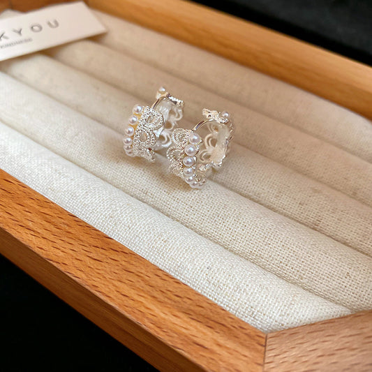A2廠 韓國韓版復古蕾絲皇冠珍珠銀針耳環 批發 折扣@洽客服 25.05.W5「HE26230」