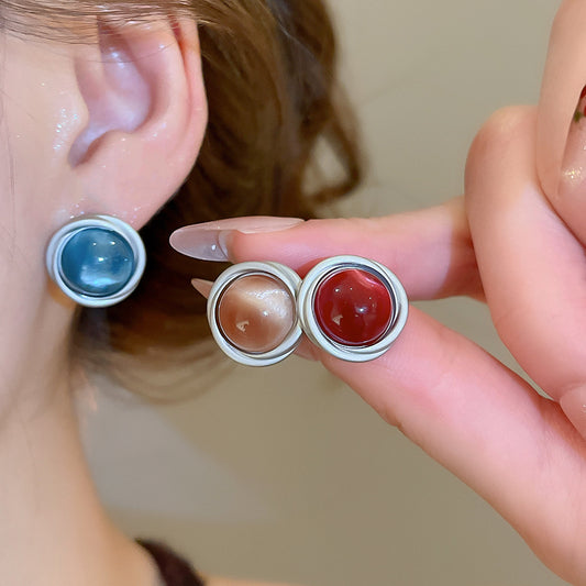 A2廠 韓國韓版復古銀針安克拉紅圓銀針耳環 批發 折扣@洽客服 25.09.W3「HE17862-2」