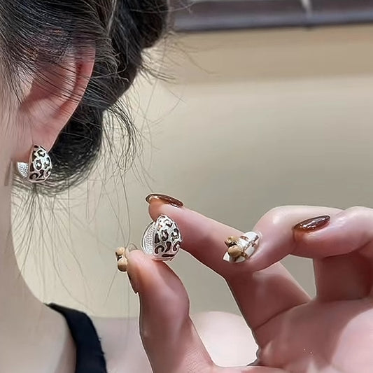 A2廠 韓國韓版復古豹紋滴油C型銀針耳環 批發 折扣@洽客服 25.10.W3「HE28758」
