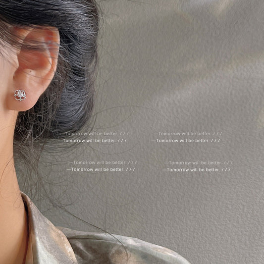 A廠 韓系氣質小巧鏤空鋯石銀針耳環「1955 1956」25.01.W2