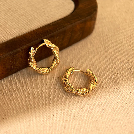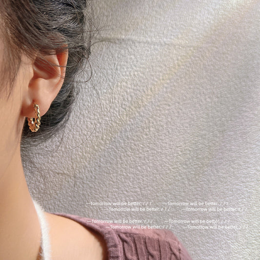 A廠 日韓系氣質麻花纏繞銅鍍14K銀針耳環「4970」24.12.W1 批發折扣@洽客服
