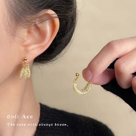 A廠 韓系米色雙層玻璃水晶銀針耳環 批發 折扣@洽客服 25.04.W1「5471」