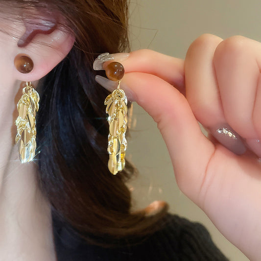 A2廠 韓國韓版復古金屬樹葉流蘇銀針耳環「HE24230」25.01.W2 批發折扣@洽客服