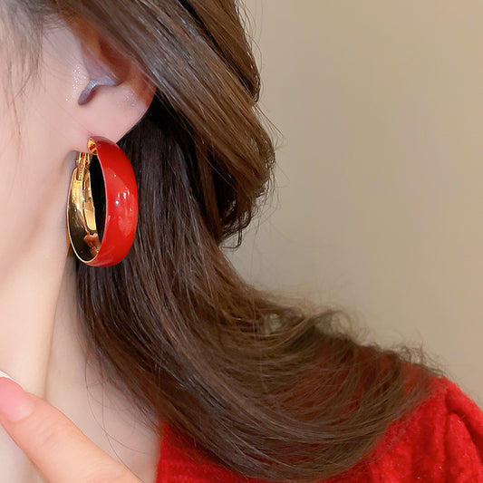 A2 韓國韓版紅色寬版滴油銀針耳環「HE22882」24.12.W2 批發折扣@洽客服