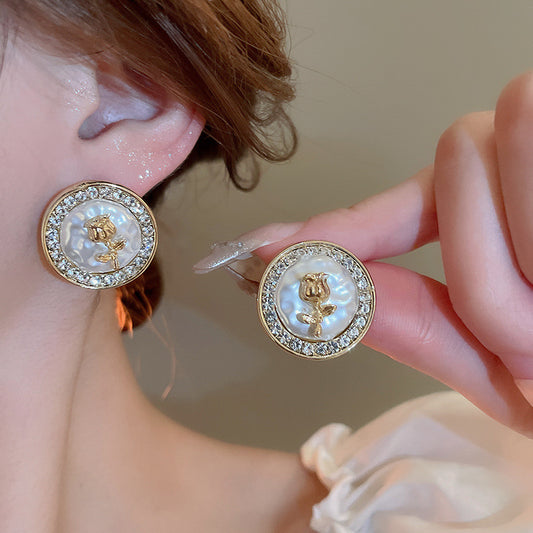 A廠 日韓系復古天然貝殼銅鍍14K銀針耳環「4185」24.12.W3 批發折扣@洽客服