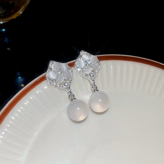 A2廠 韓國韓版鑲鑽貓眼石花朵銀針耳環 批發 折扣@洽客服 25.06.W1「HE26093」