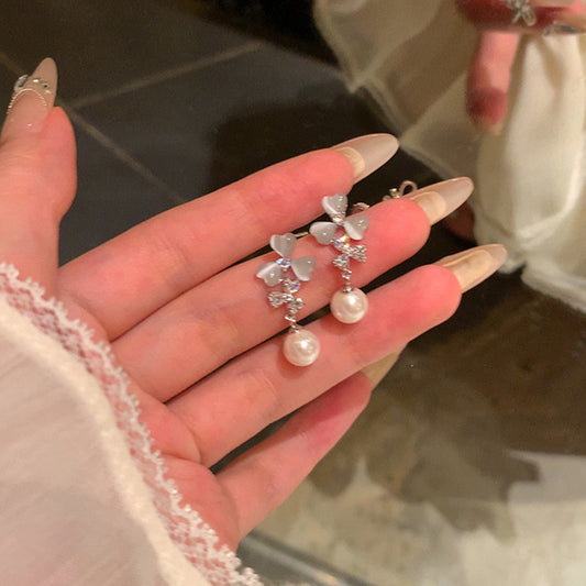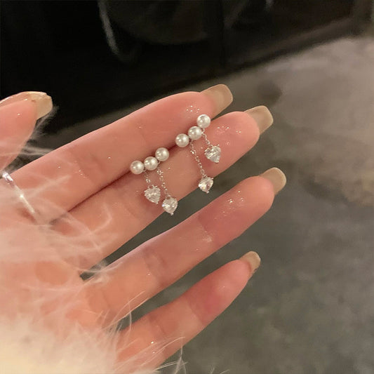 A2廠 韓國韓版鋯石珍珠流蘇銀針耳環 批發 折扣@洽客服 25.05.W4「HE25873」