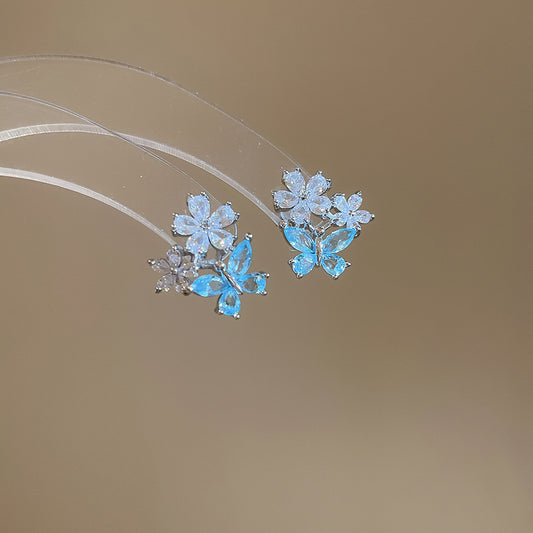 A2廠 韓國韓版鋯石花蝴蝶銀針耳環 批發 折扣@洽客服 25.06.W1「HE26176」