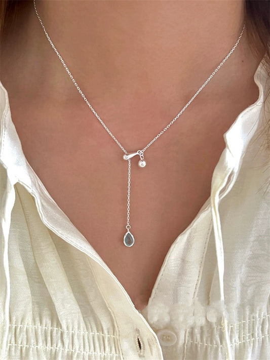 C2 韓國韓版藍色水滴立鋯S925純銀項鍊「SN3229」24.09.W2 批發折扣@洽客服