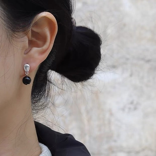 C2 韓國韓版輕奢天然黑瑪瑙橢圓S925純銀耳環「SE2294」24.08.W1 批發折扣@洽客服