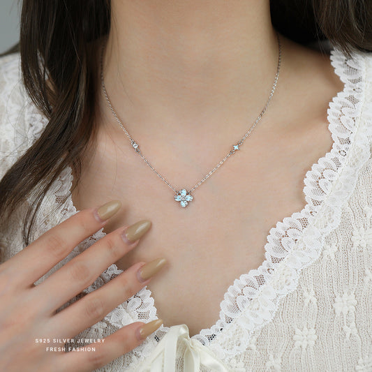 C廠 韓國韓版淺藍滴膠四葉草S925純銀項鍊 批發 折扣@洽客服 25.12. W2「A4763」
