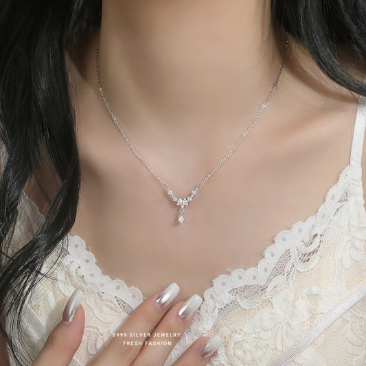 C廠 韓國韓版流蘇托帕石水滴花S999純銀項鍊 批發 折扣@洽客服 25.10.W5「A4470」