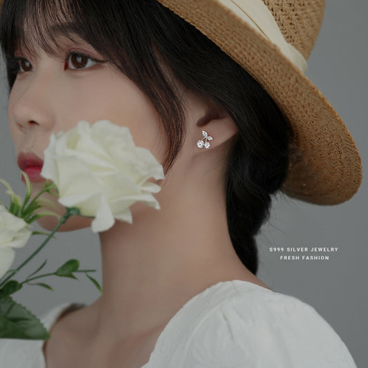 C廠 韓國韓版閃亮鋯石櫻桃S999足純銀耳環 批發 折扣@洽客服 25.10.W3「E3248」