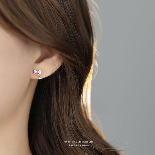 C廠 韓系粉紅蝴蝶結S999純銀耳環 批發 折扣@洽客服 25.09.W3「E5588」