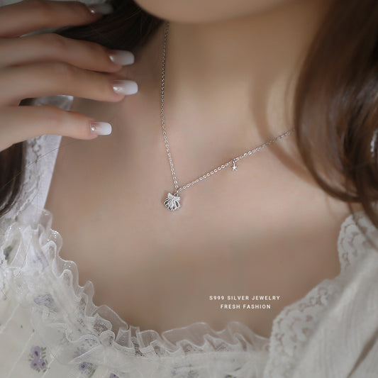 C廠 韓國韓系鏤空線條貝殼吊墜S999純銀項鍊 批發 折扣@洽客服 25.10.W1「A4388」