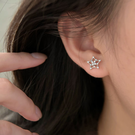 C3廠 韓國韓版鏤空五角星鑲嵌S999足銀耳環 批發 折扣@洽客服 25.08.W4「ses071」