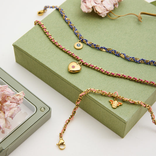 B廠 歐美款 手工彩色編繩鈦鋼鍍18K金手鍊 批發 折扣@洽客服 25.09.W2「「JDB0205061 JDB0205062 JDB0205063」