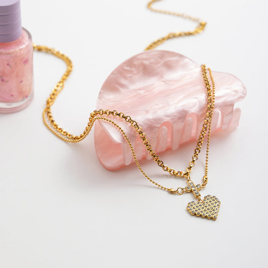 B廠 歐美款 帶鑽十字架愛心鈦鋼鍍18K金項鍊 批發 折扣@洽客服 25.09.W2「JDN0204042」