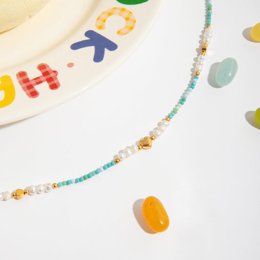 B廠 歐美款GINA 藍松石淡水珍珠鈦鋼鍍18K金項鍊 批發 折扣@洽客服 25.08.W3「JDN0204047」