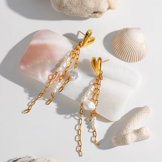 B廠 歐美款 貝珠愛心流蘇鈦鋼鍍18K金耳環 批發 折扣@洽客服 25.03.W3「JDEW2411005」